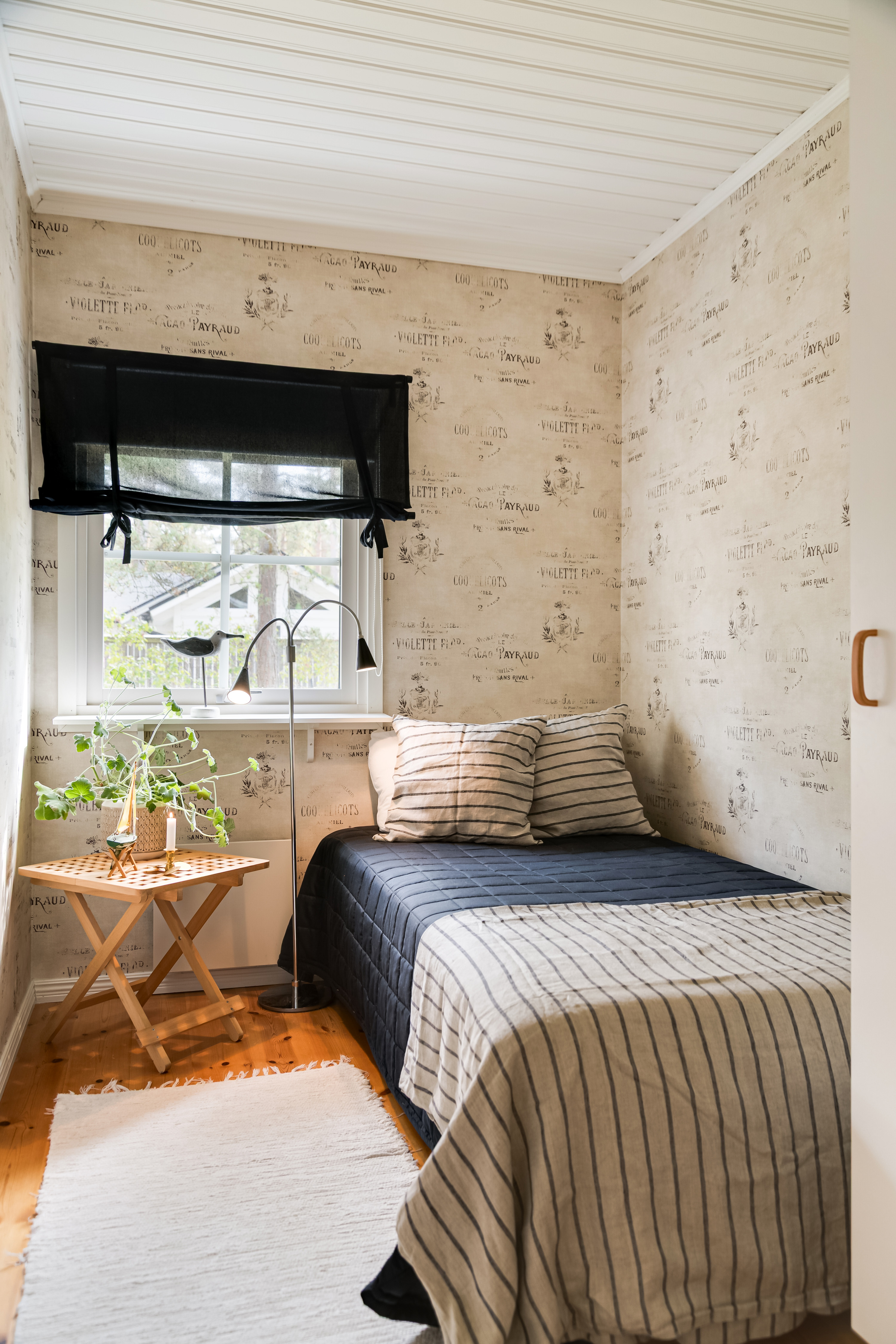 Trägolv och tapet.