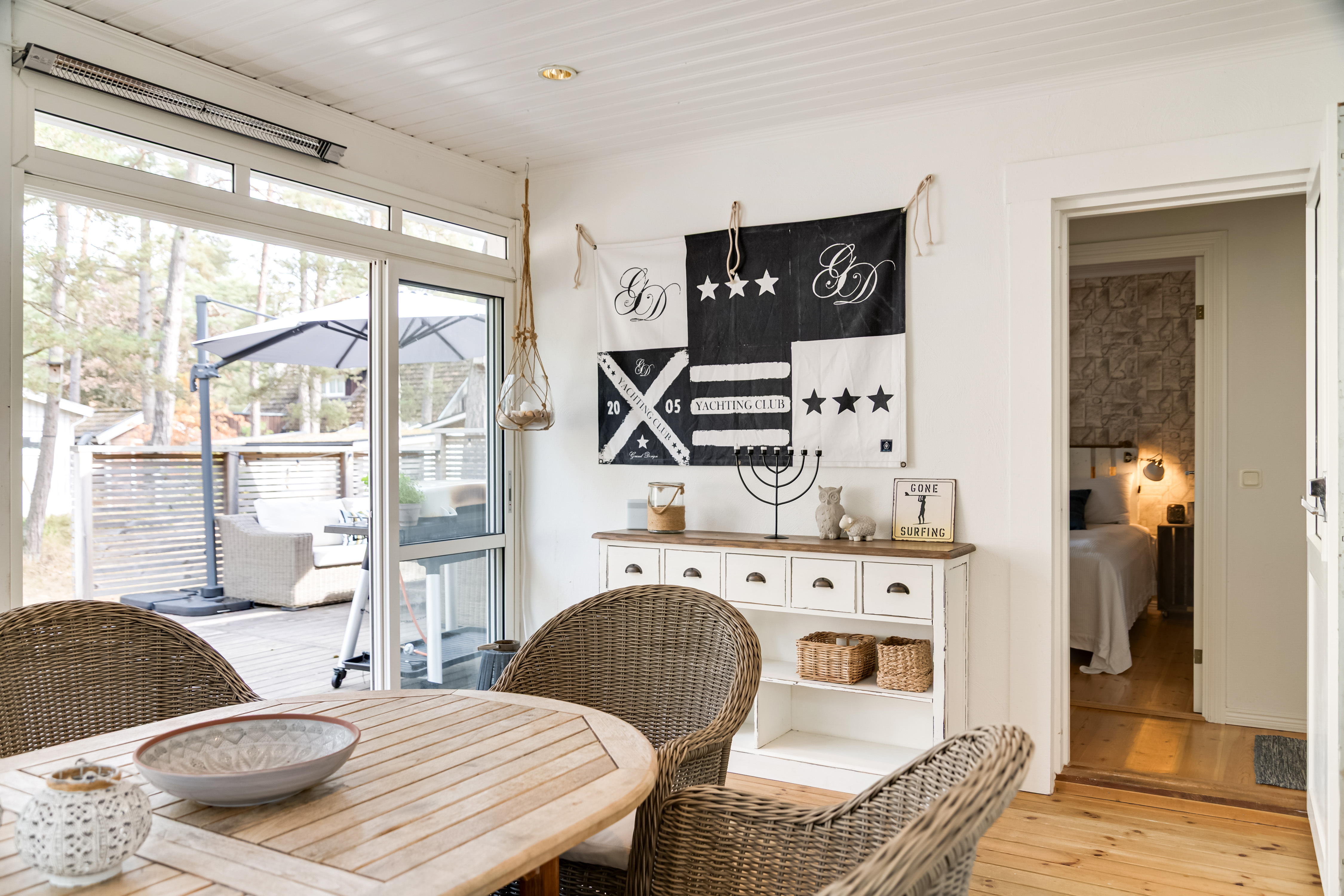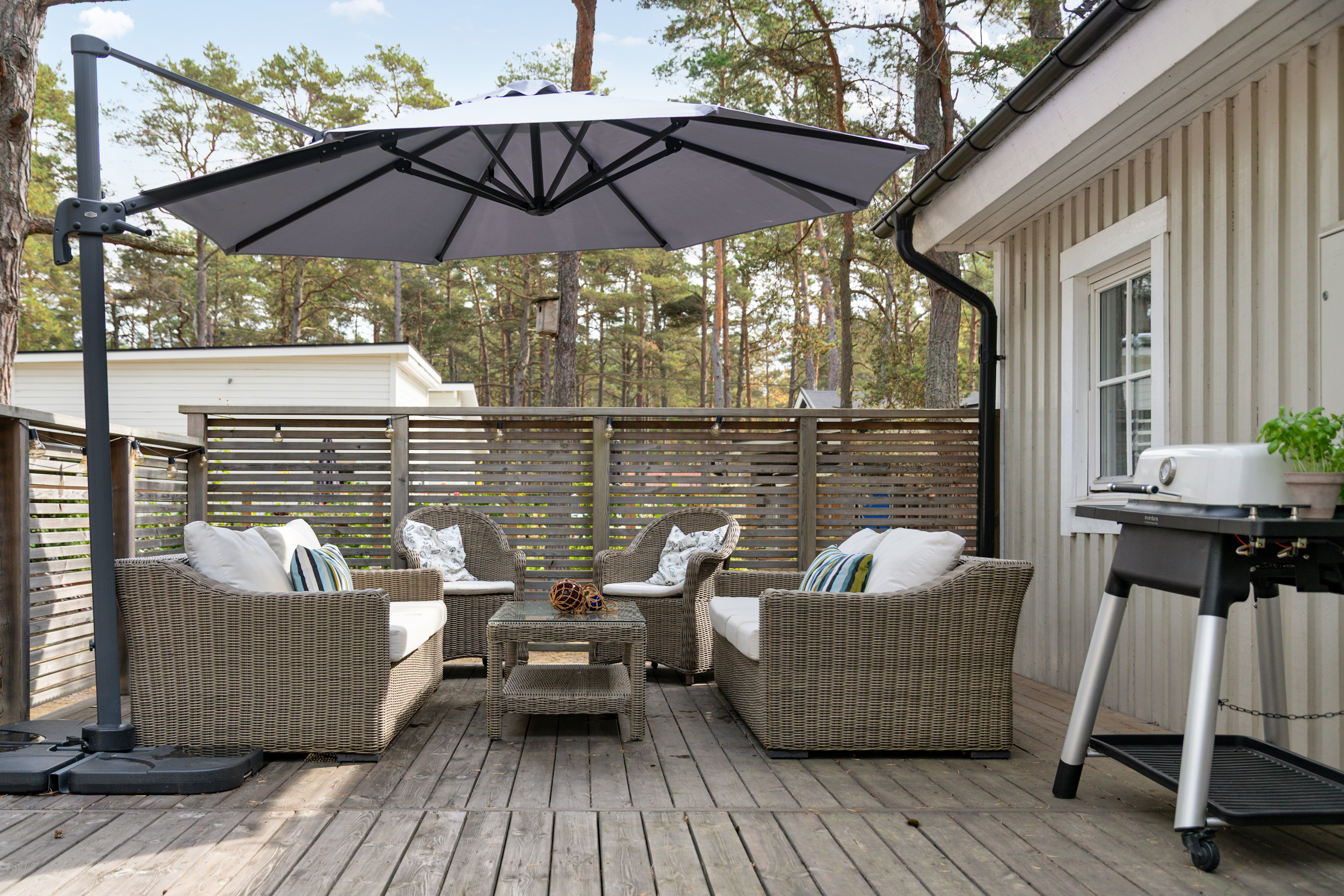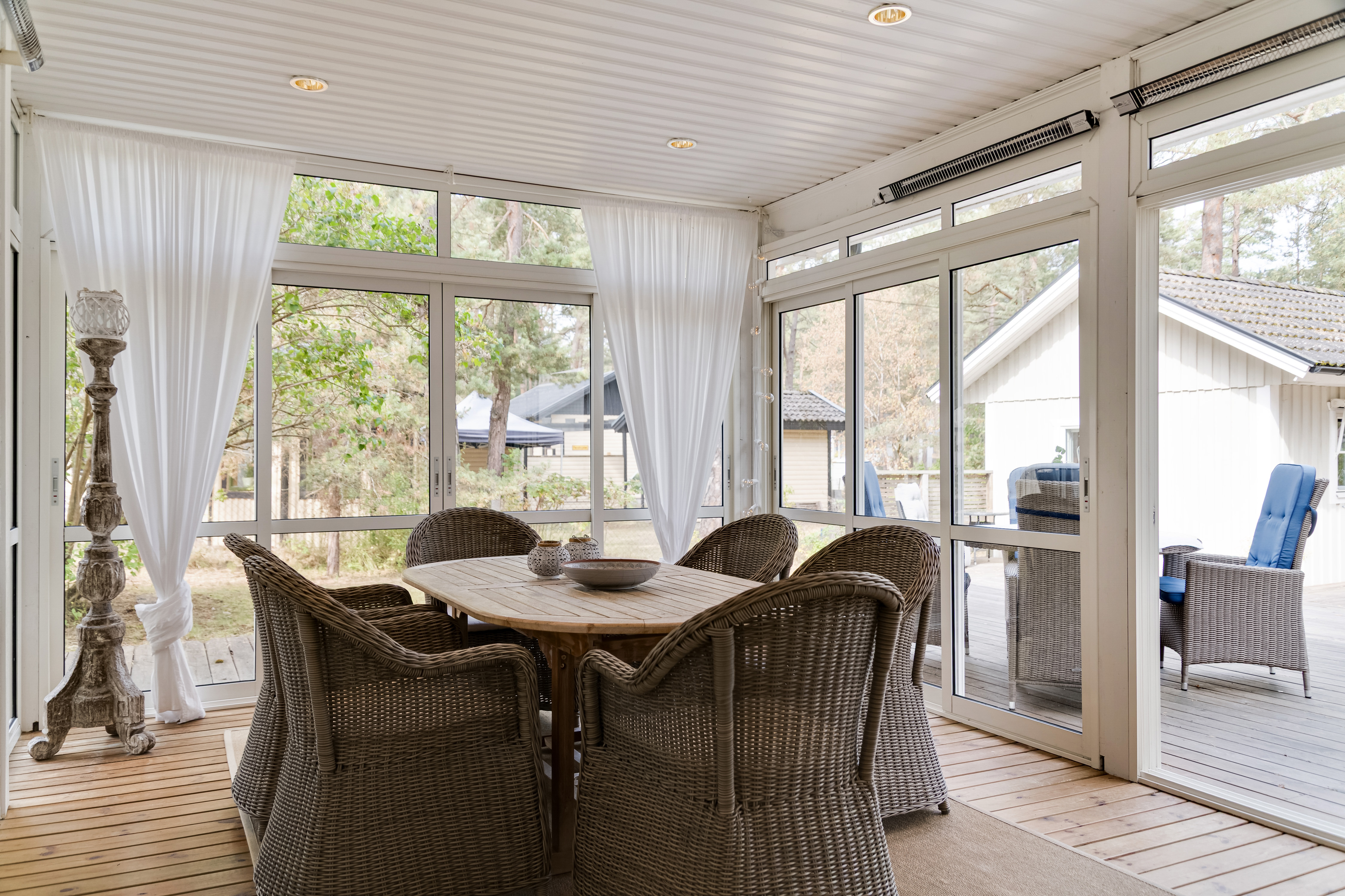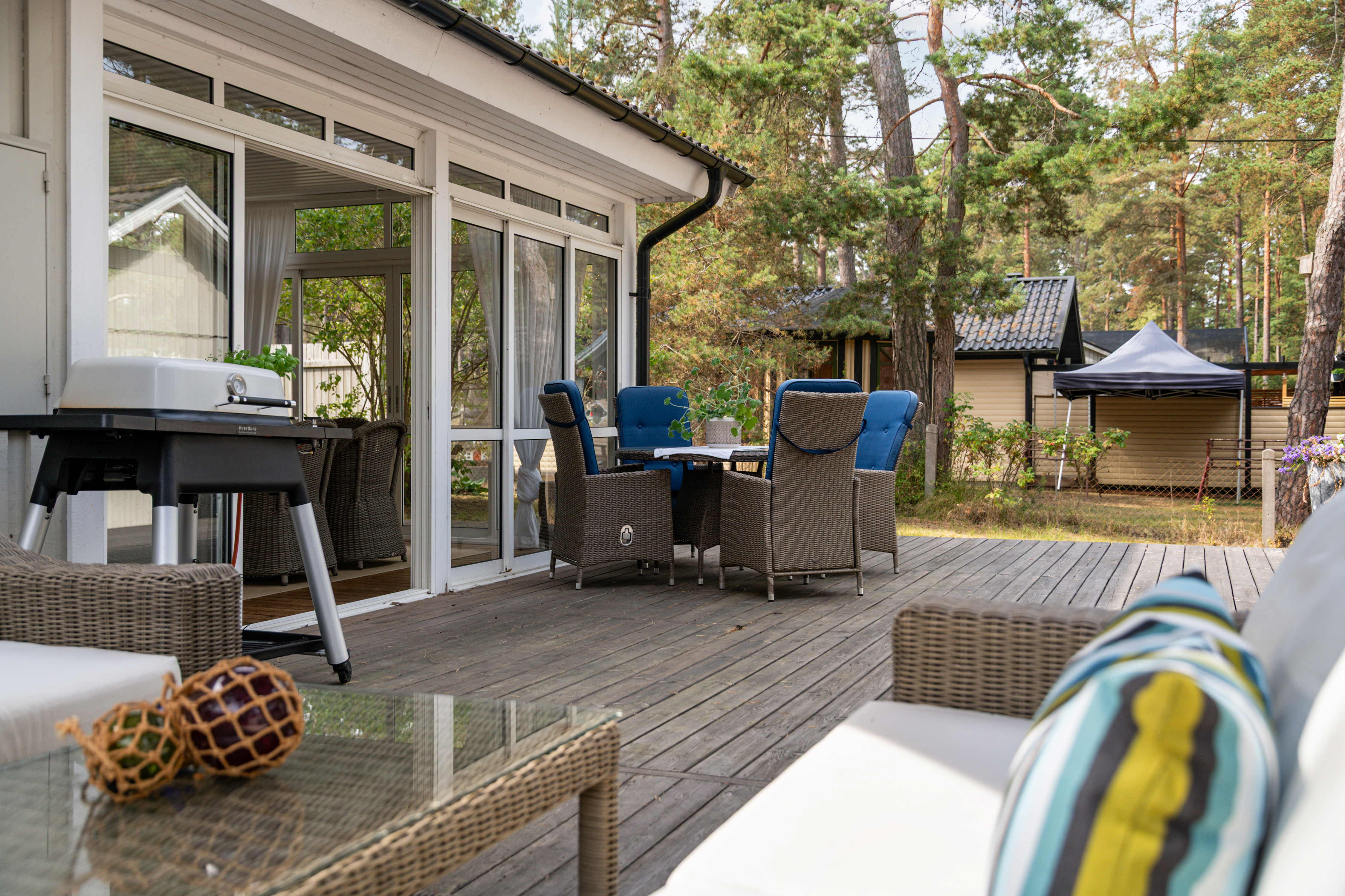 Det finns även ett fint uterum med intilliggande stort trädäck med skönt och skyddat solläge.