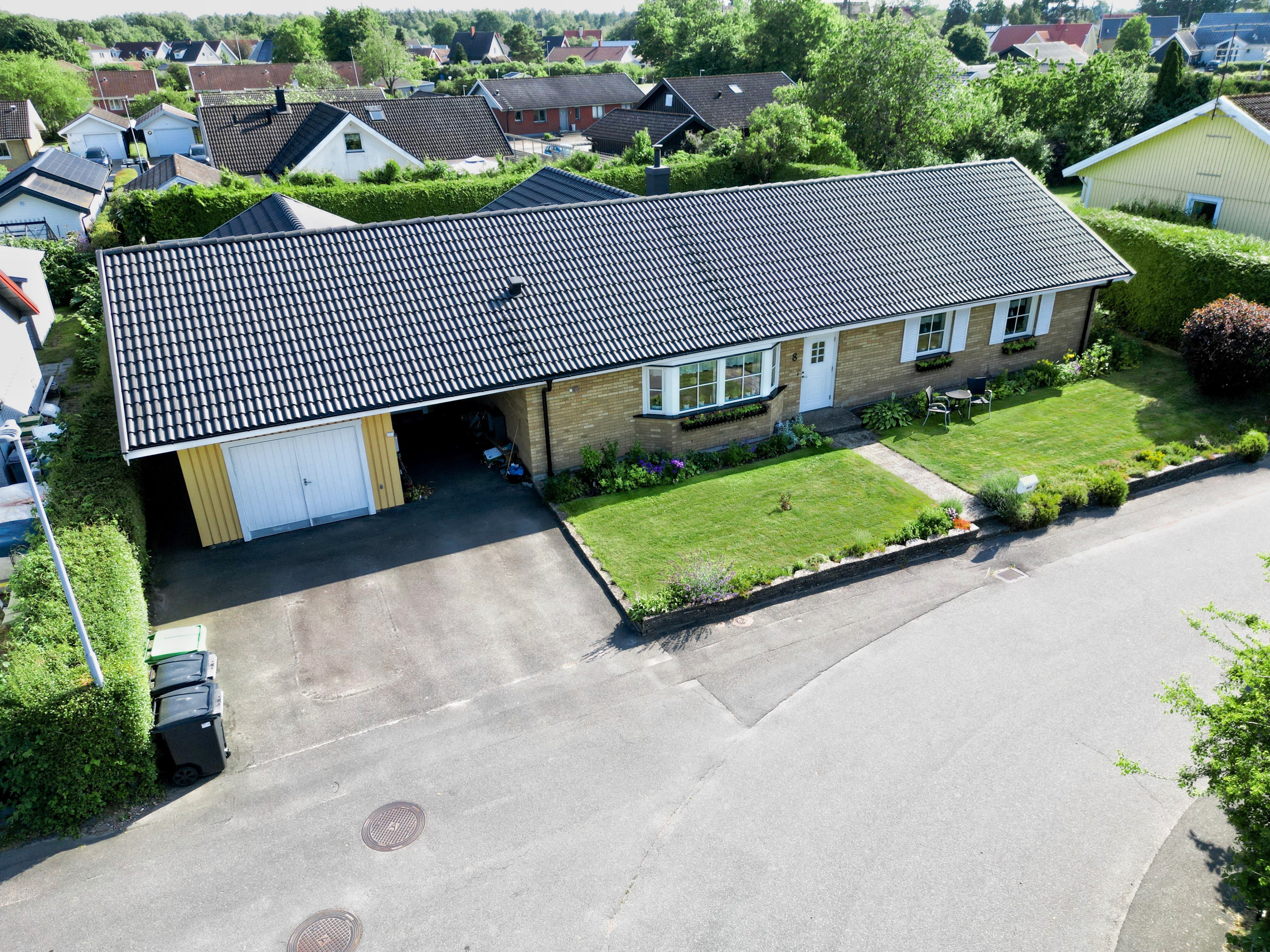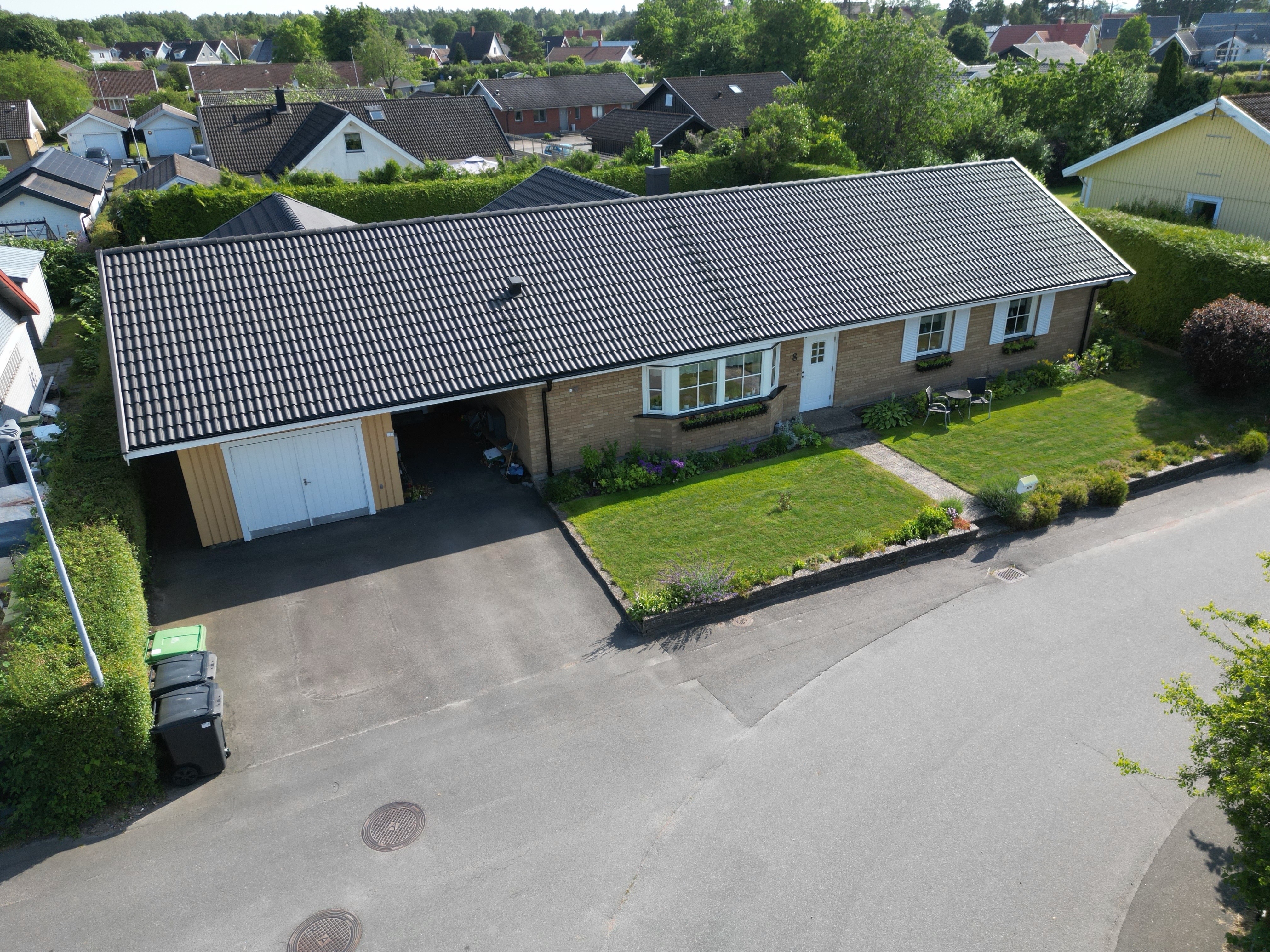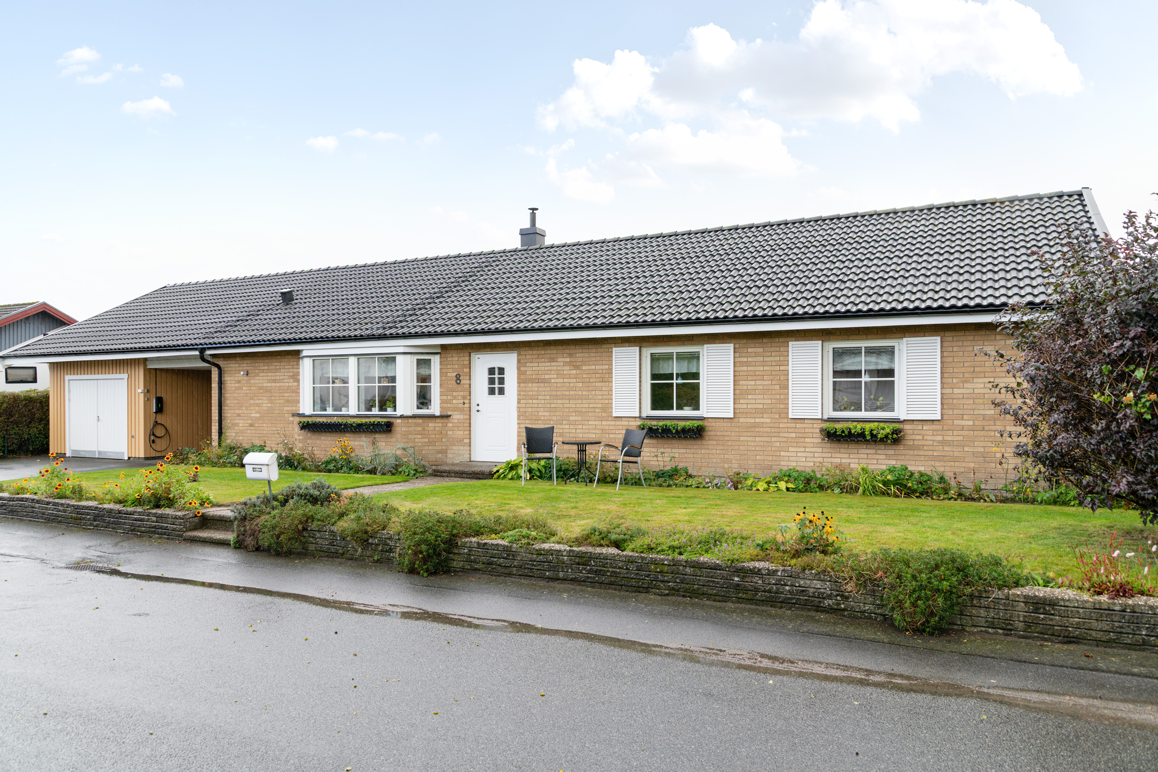 En välbyggd tegelvilla i 1-plan från 1987, med förträfflig planlösning efter tillbyggnaden från 1999, som passar även för en större familj, eller för hemmaföretagaren.