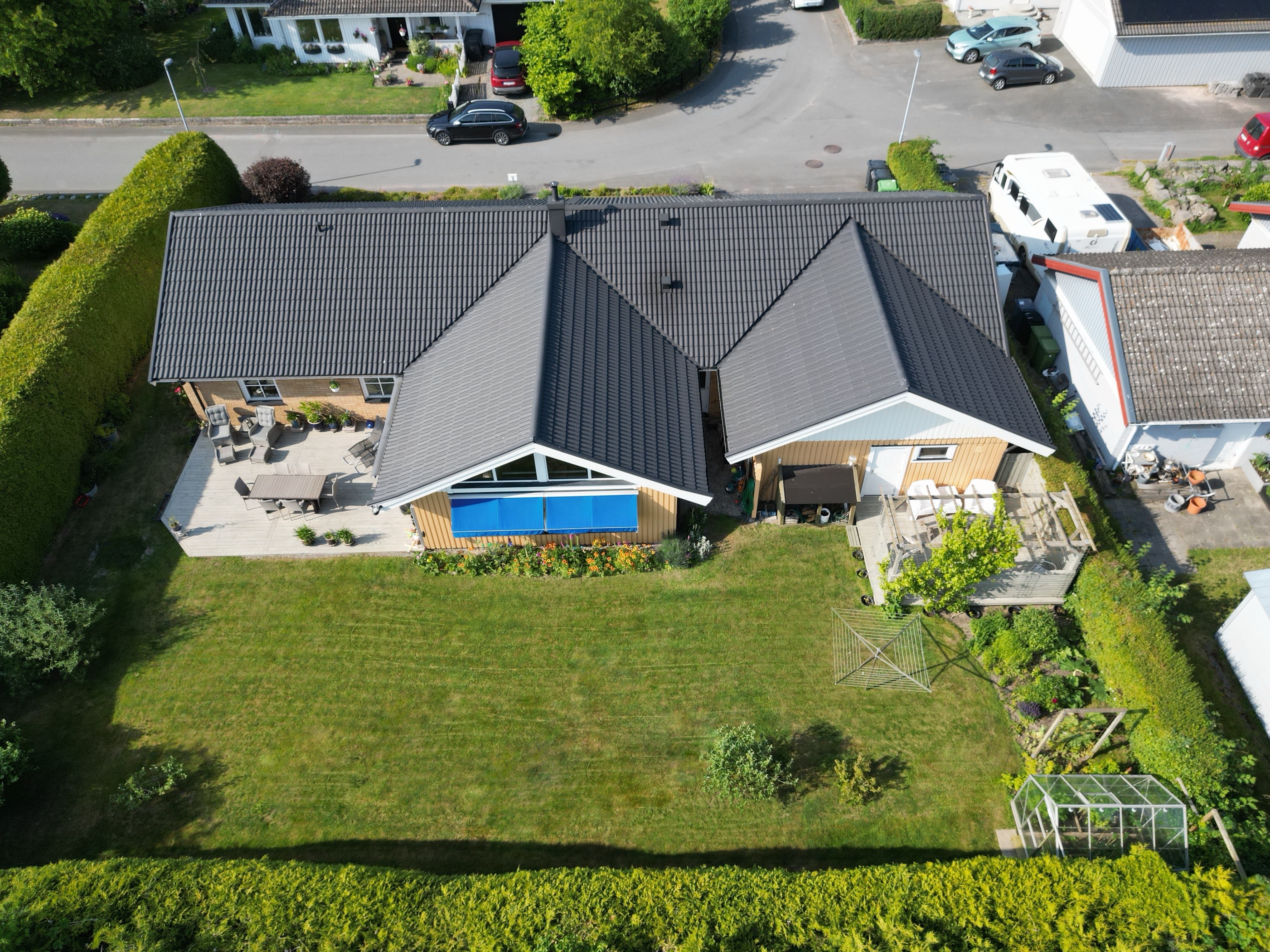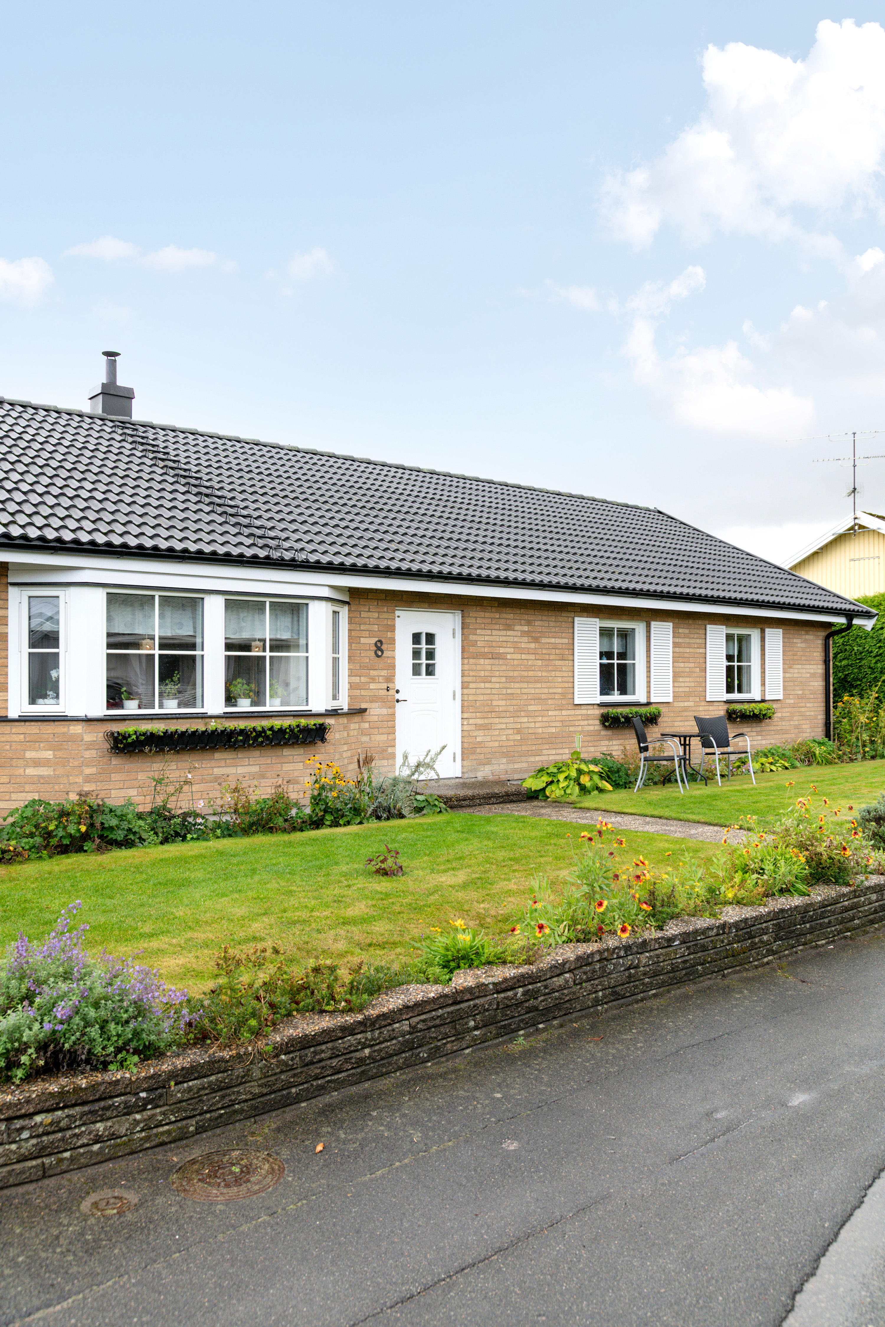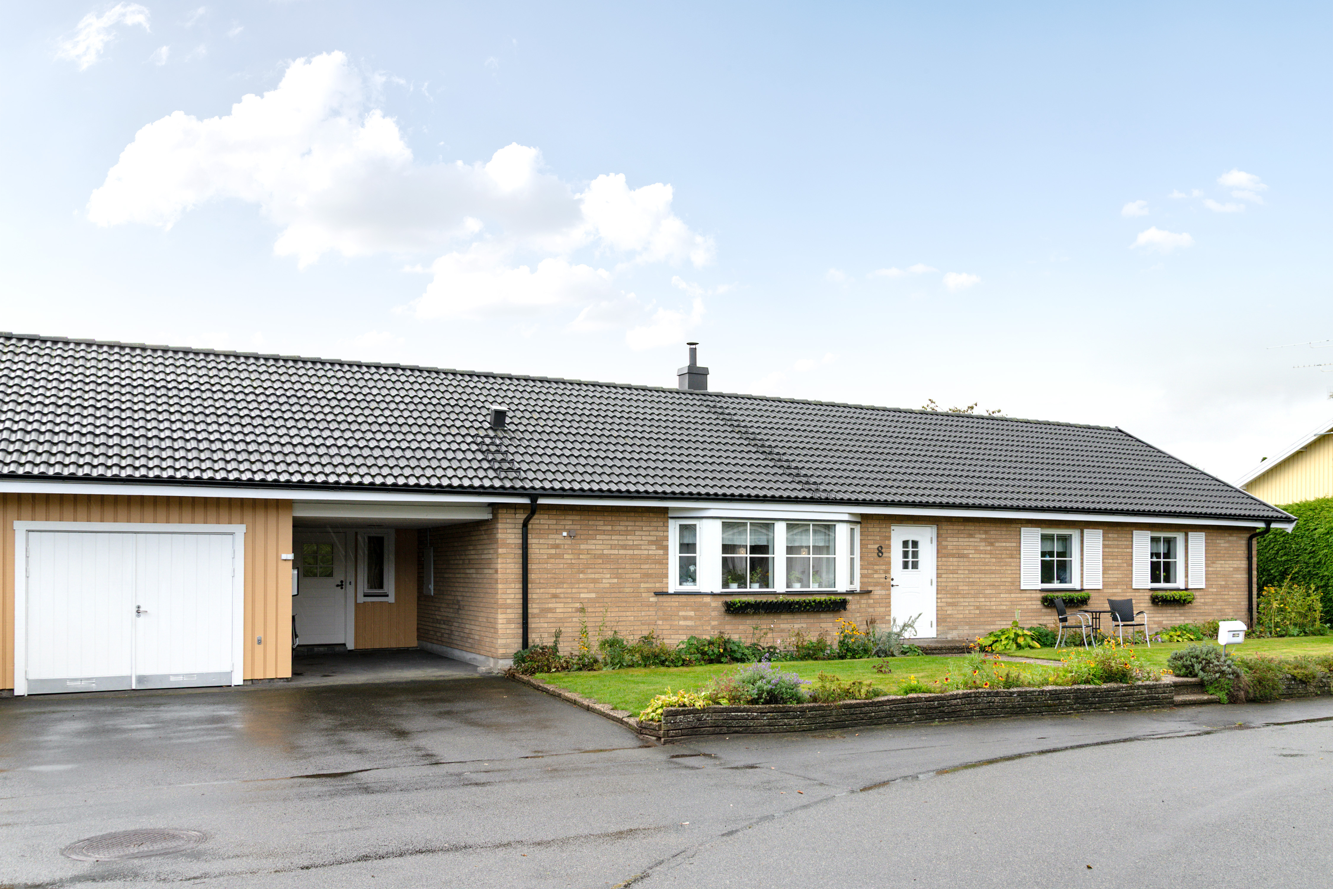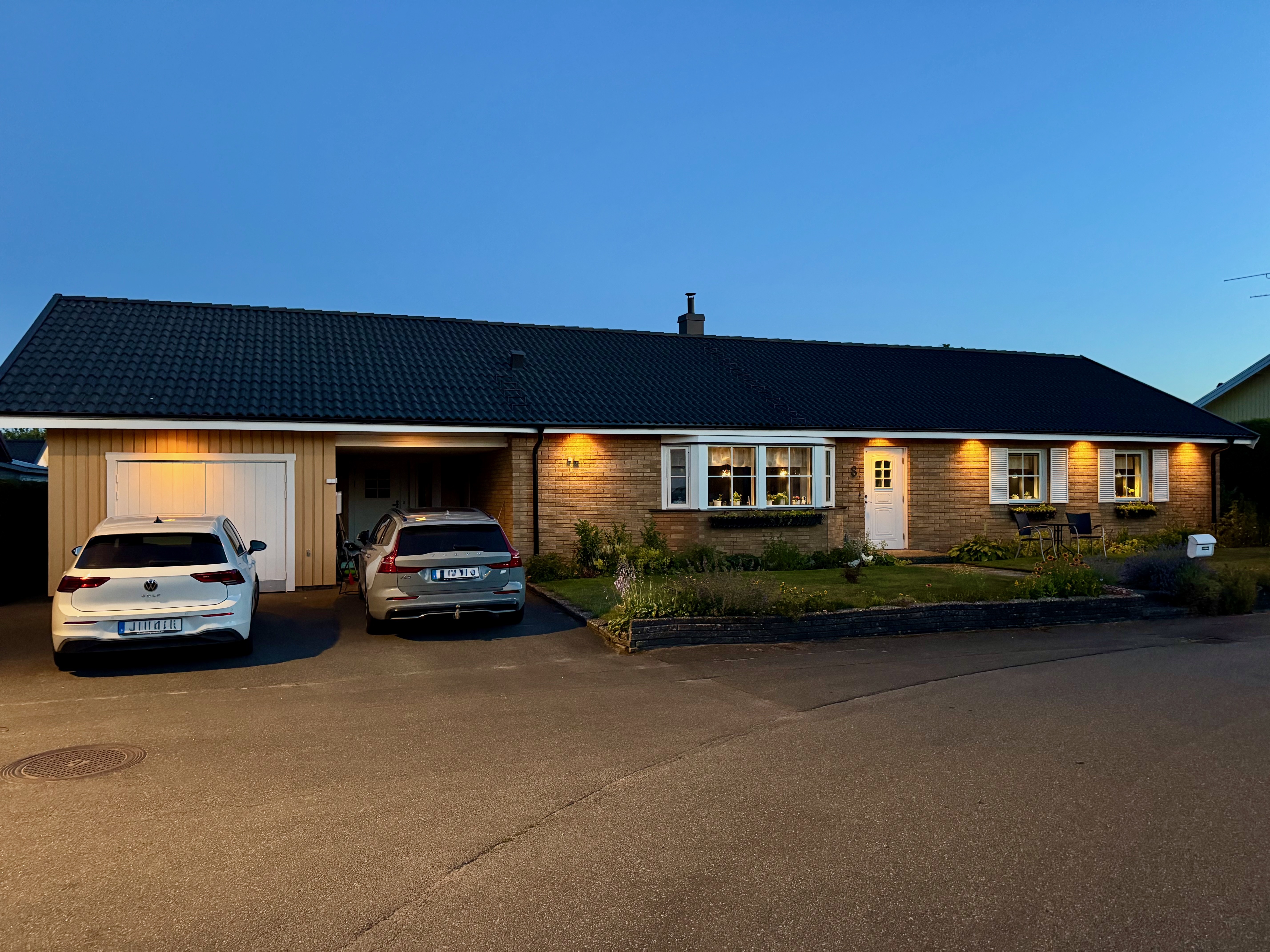 En välbyggd tegelvilla i 1-plan från 1987, med förträfflig planlösning efter tillbyggnaden från 1999, som passar även för en större familj, eller för hemmaföretagaren.