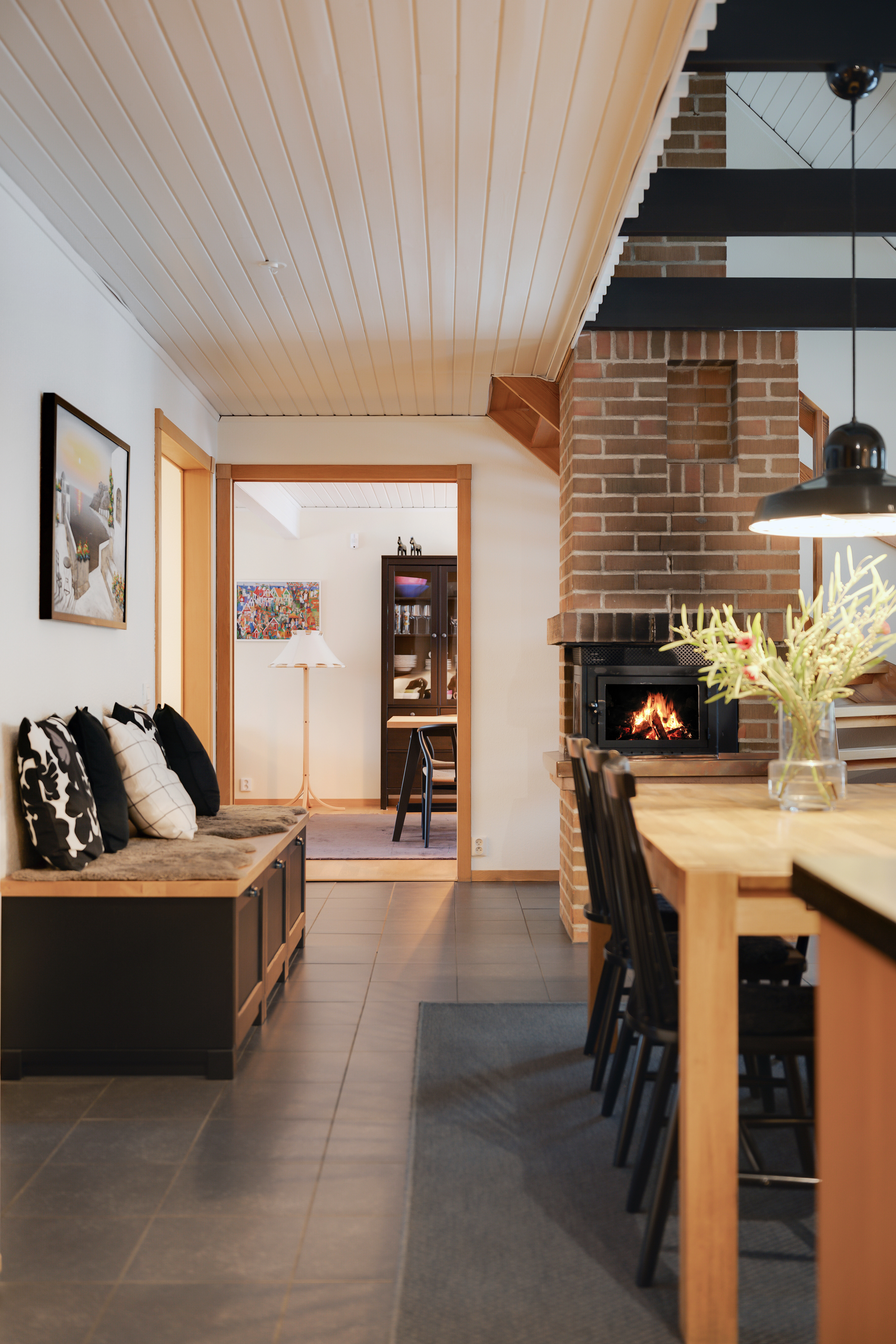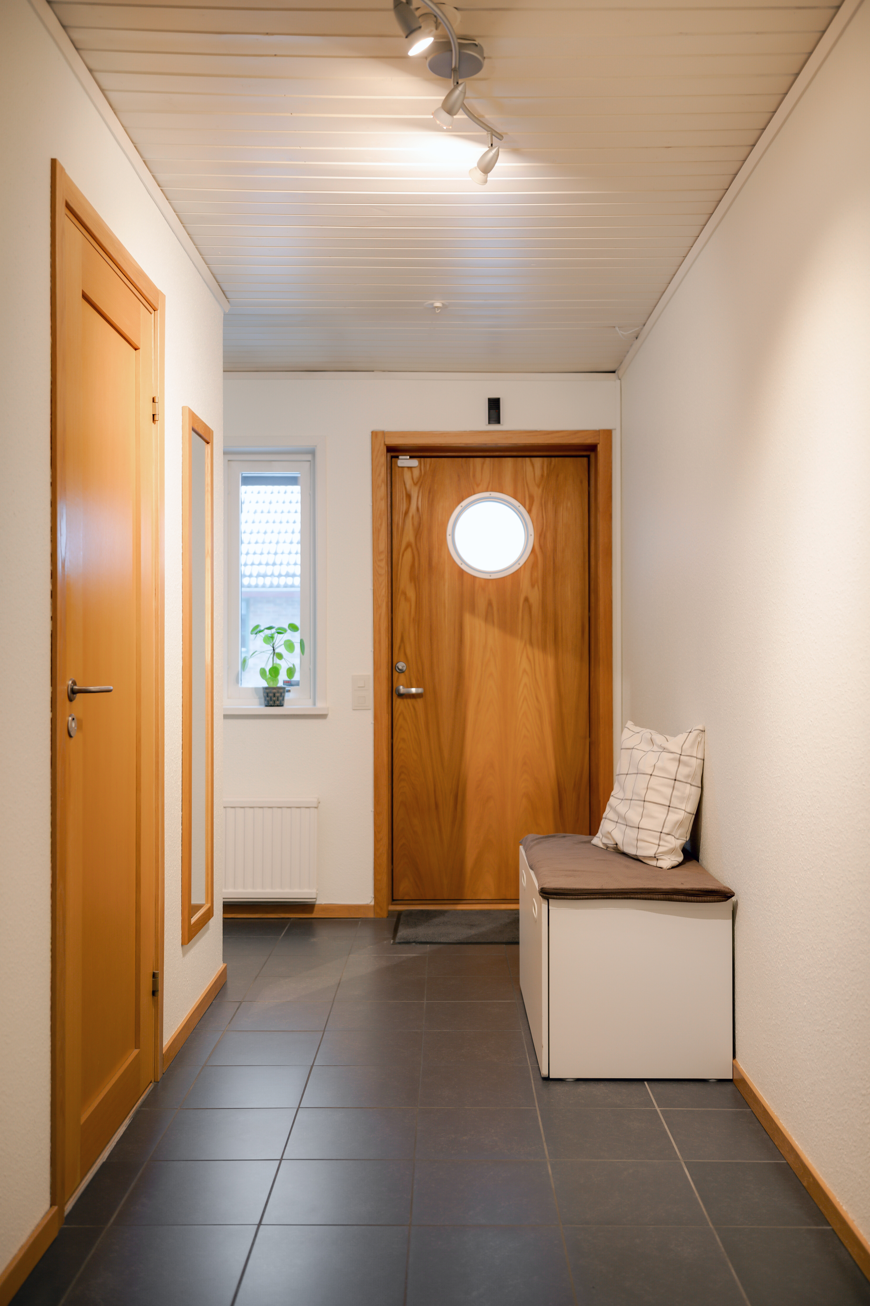 - Klinkergolv och ljus vägg.