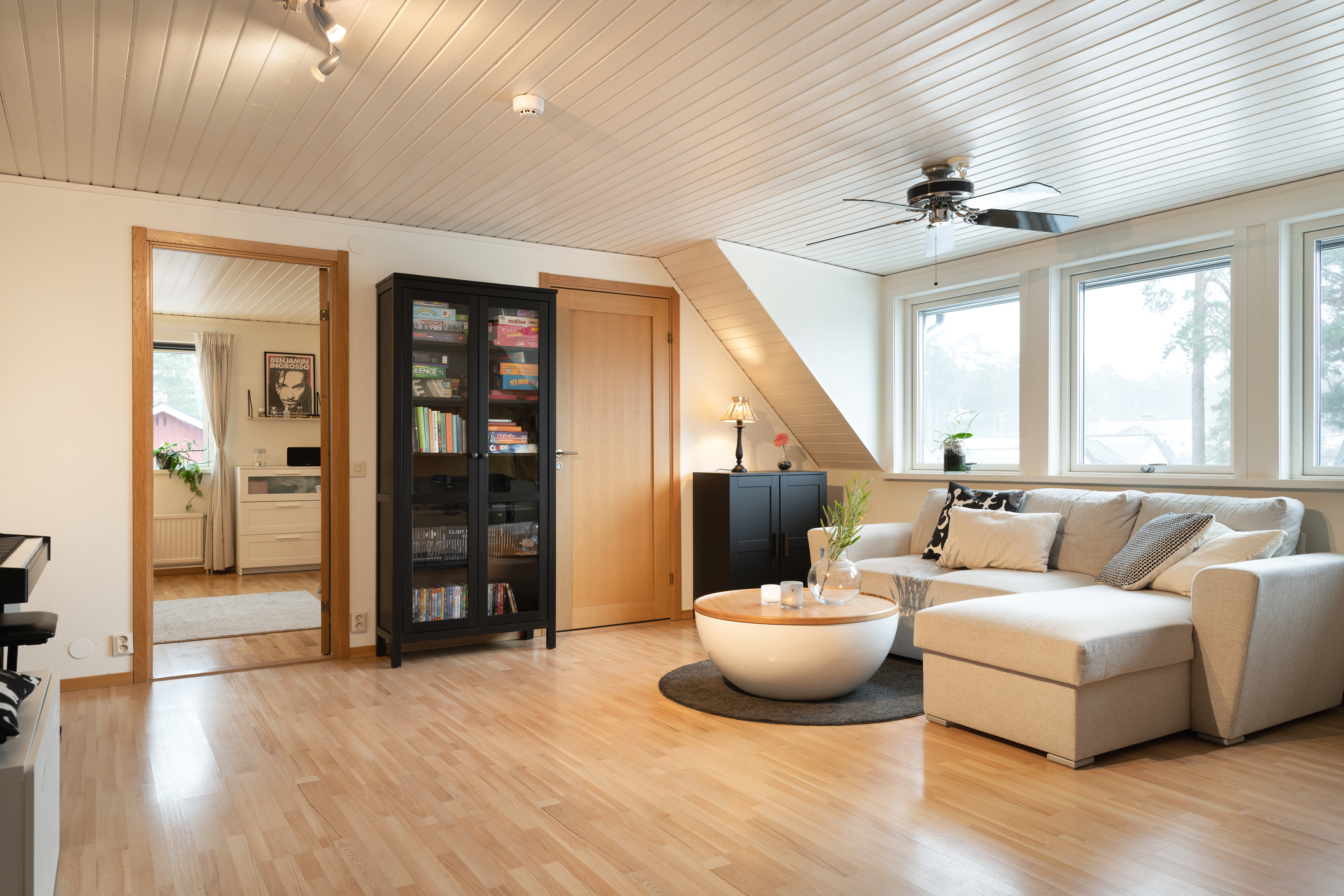 - Parkettgolv och målad vägg. - Altandörr till baksidan.