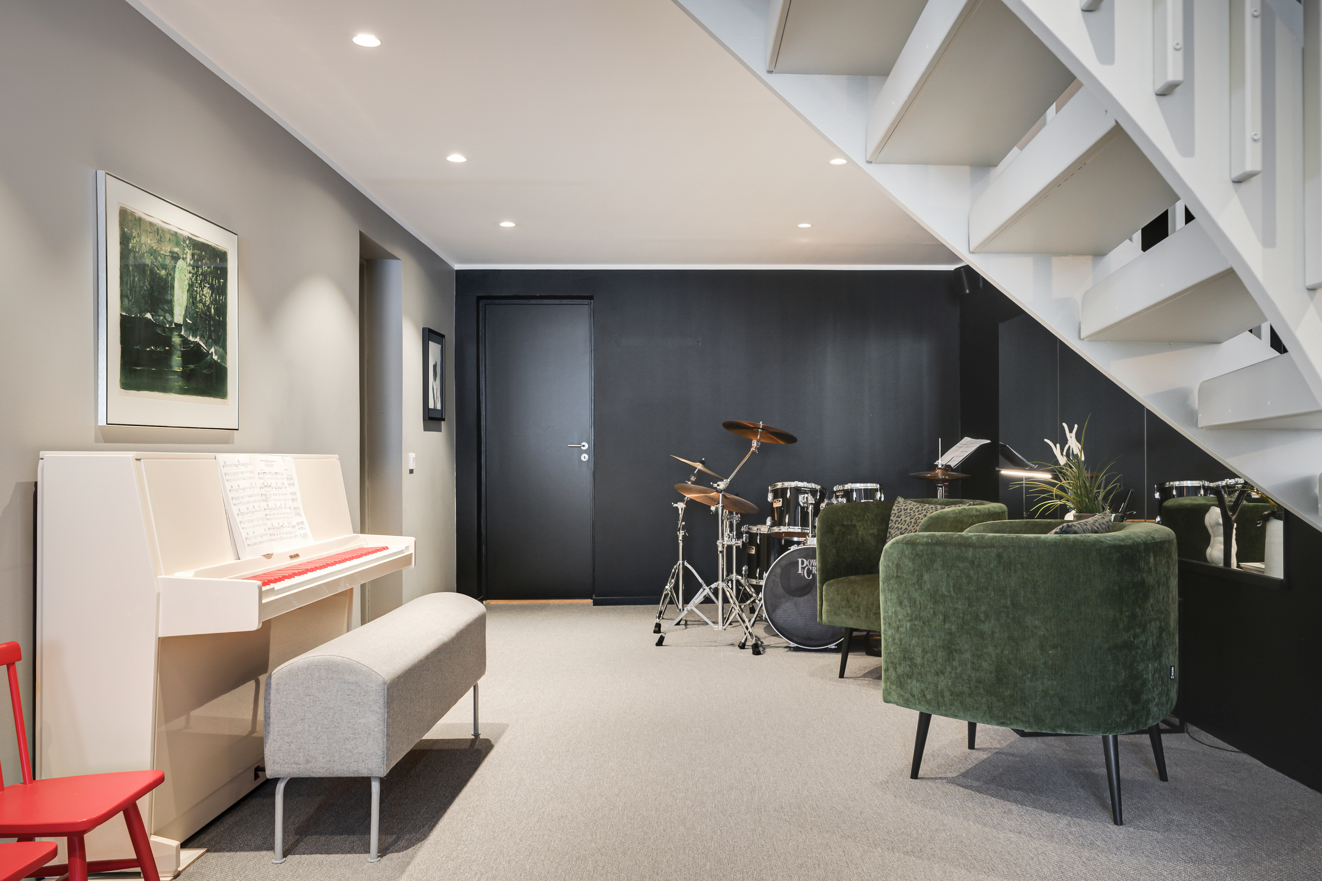 Souterrängplan med allrum/musikrum