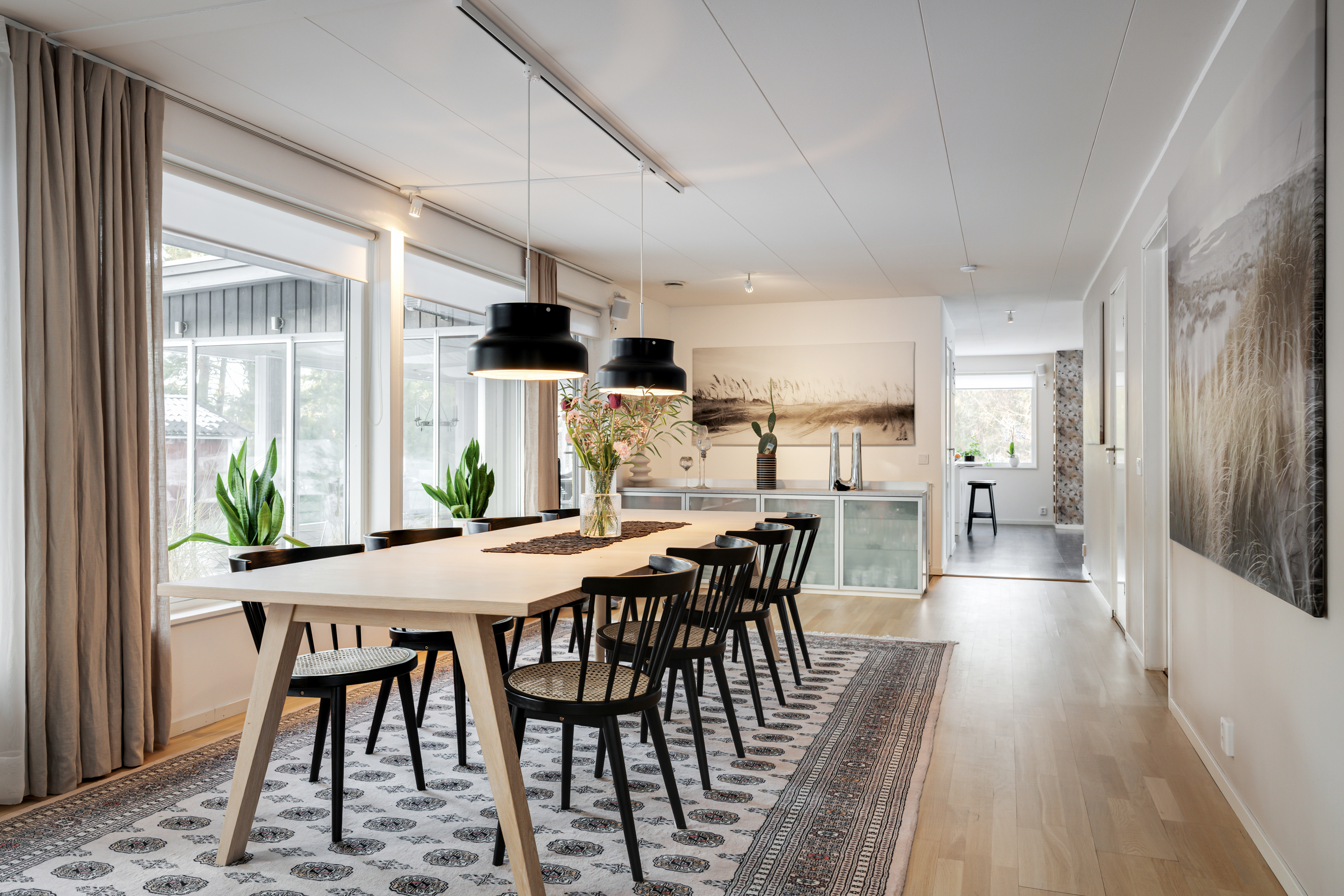 Det är generösa ytor i huset då planlösningen är ombyggd och man har vunnit mycket på en öppnare och mer tillgänglig planlösning än ursprunget.