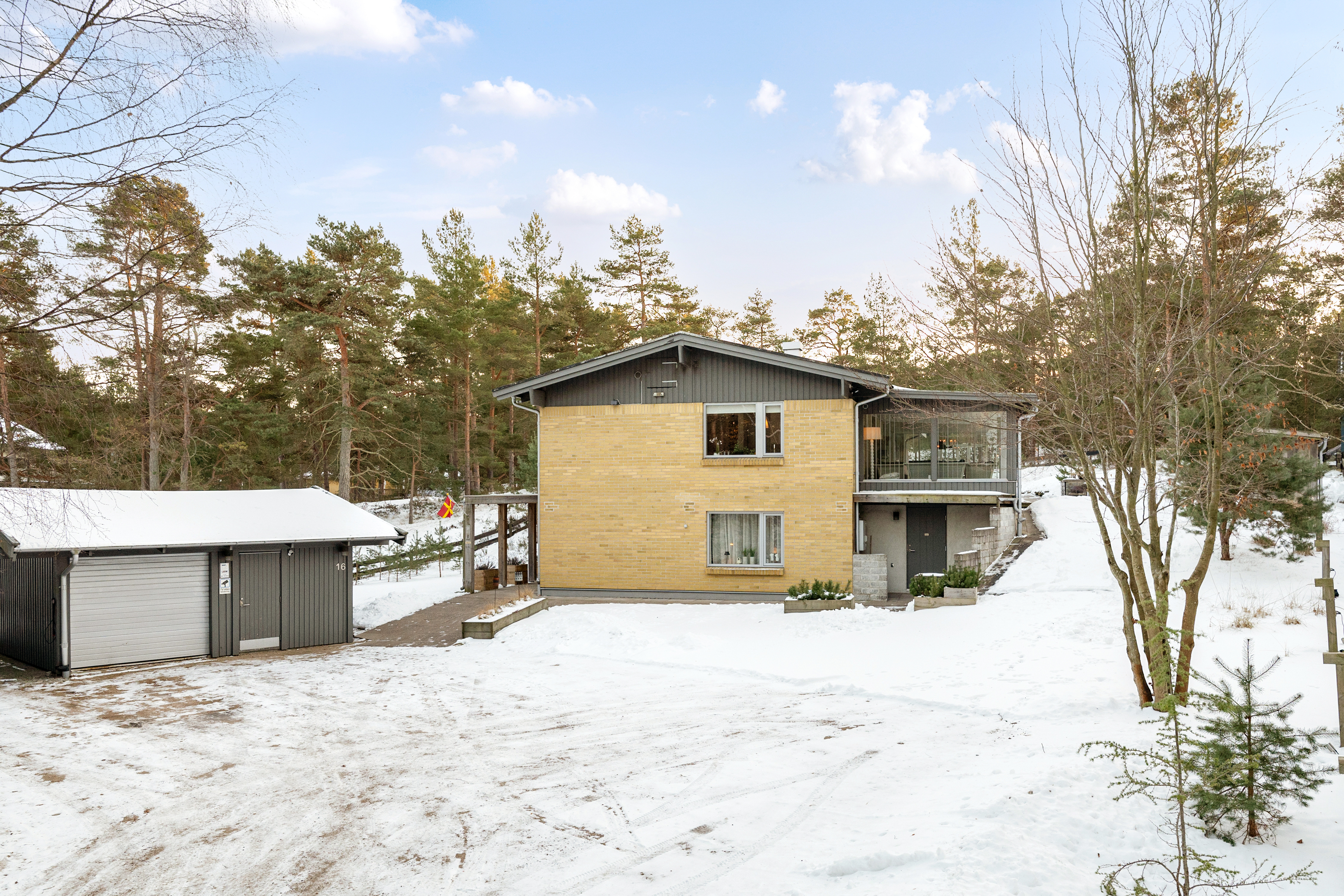 Stor uppfart med garage/förråd