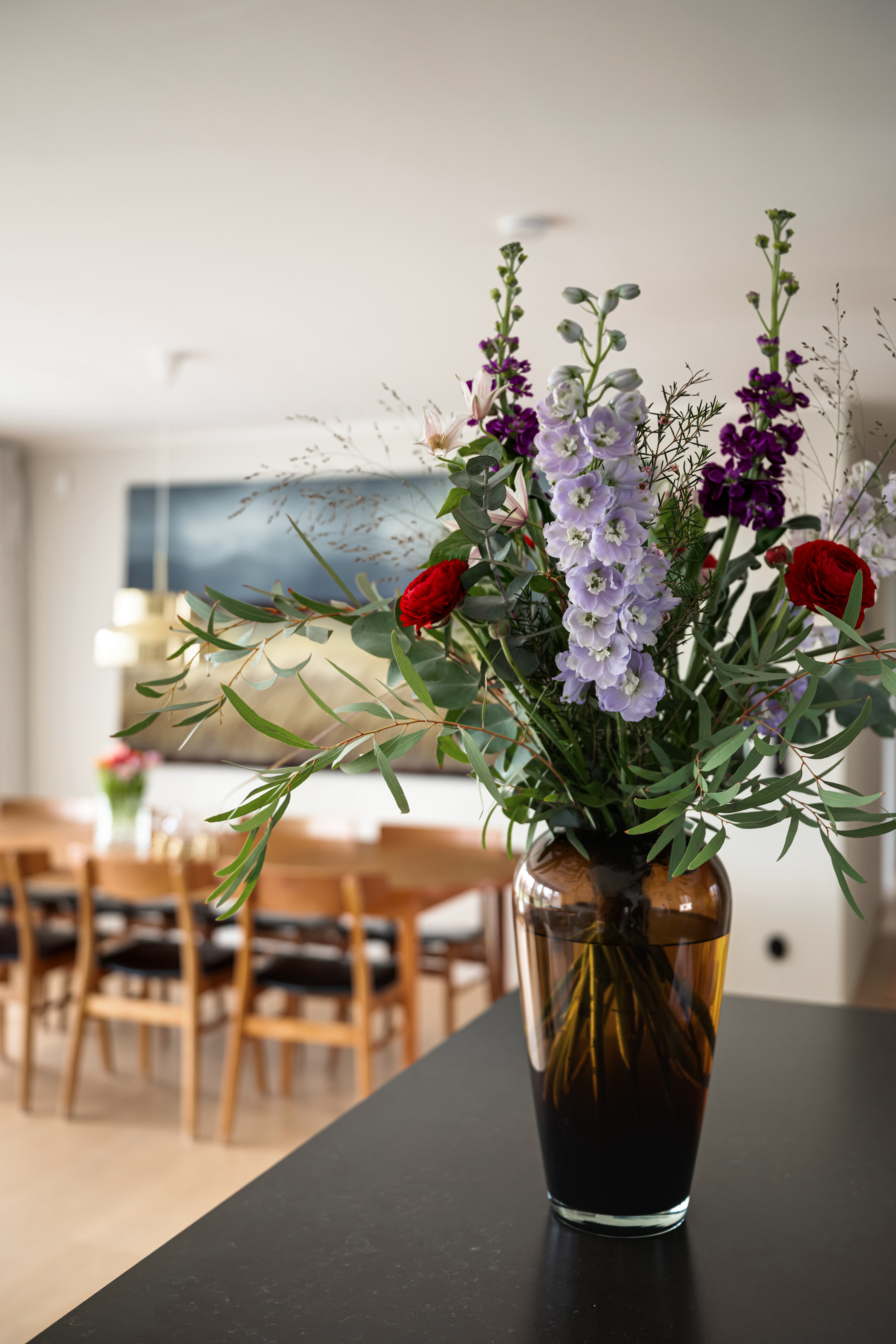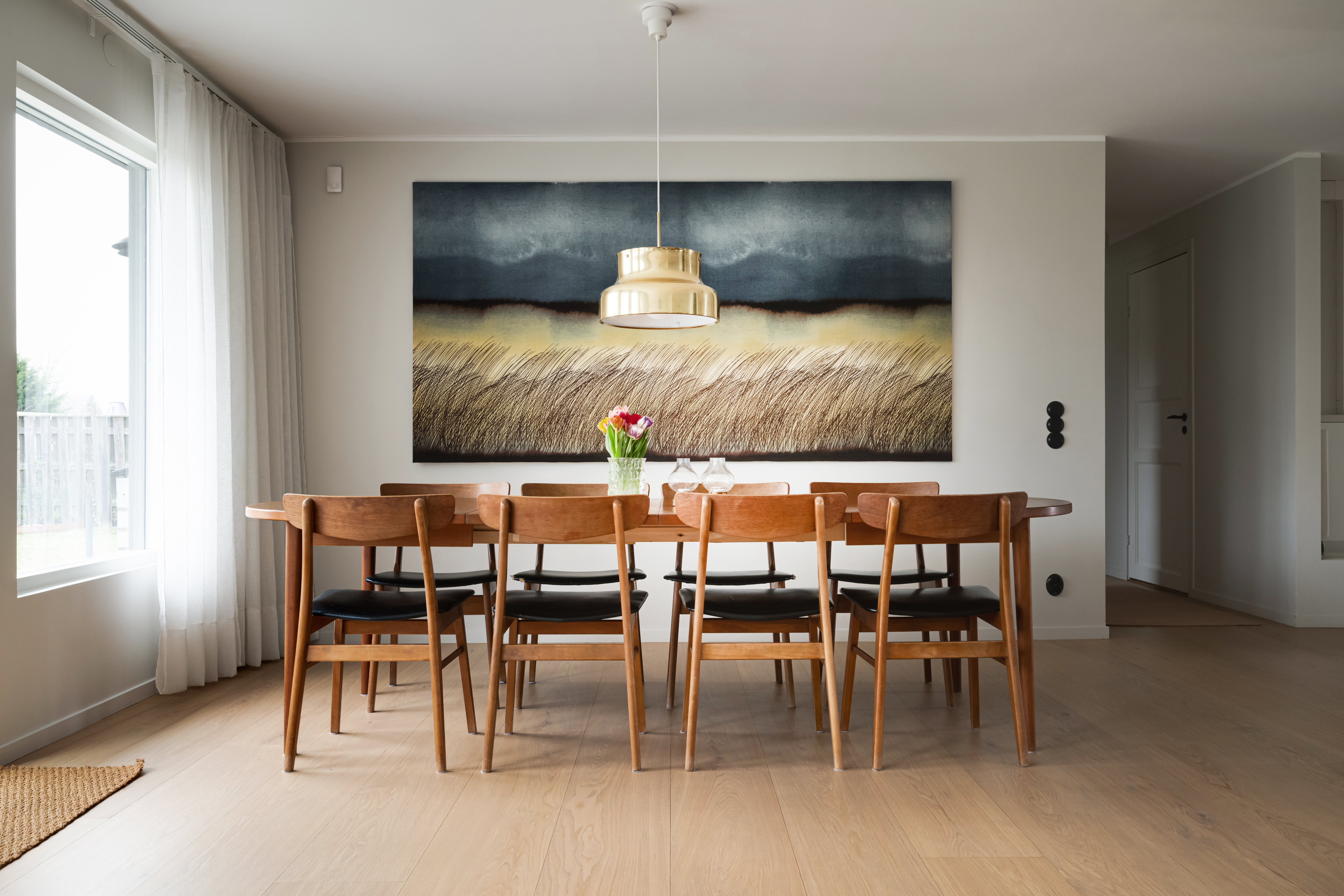 Matplats och vardagsrum i öppen planlösning
