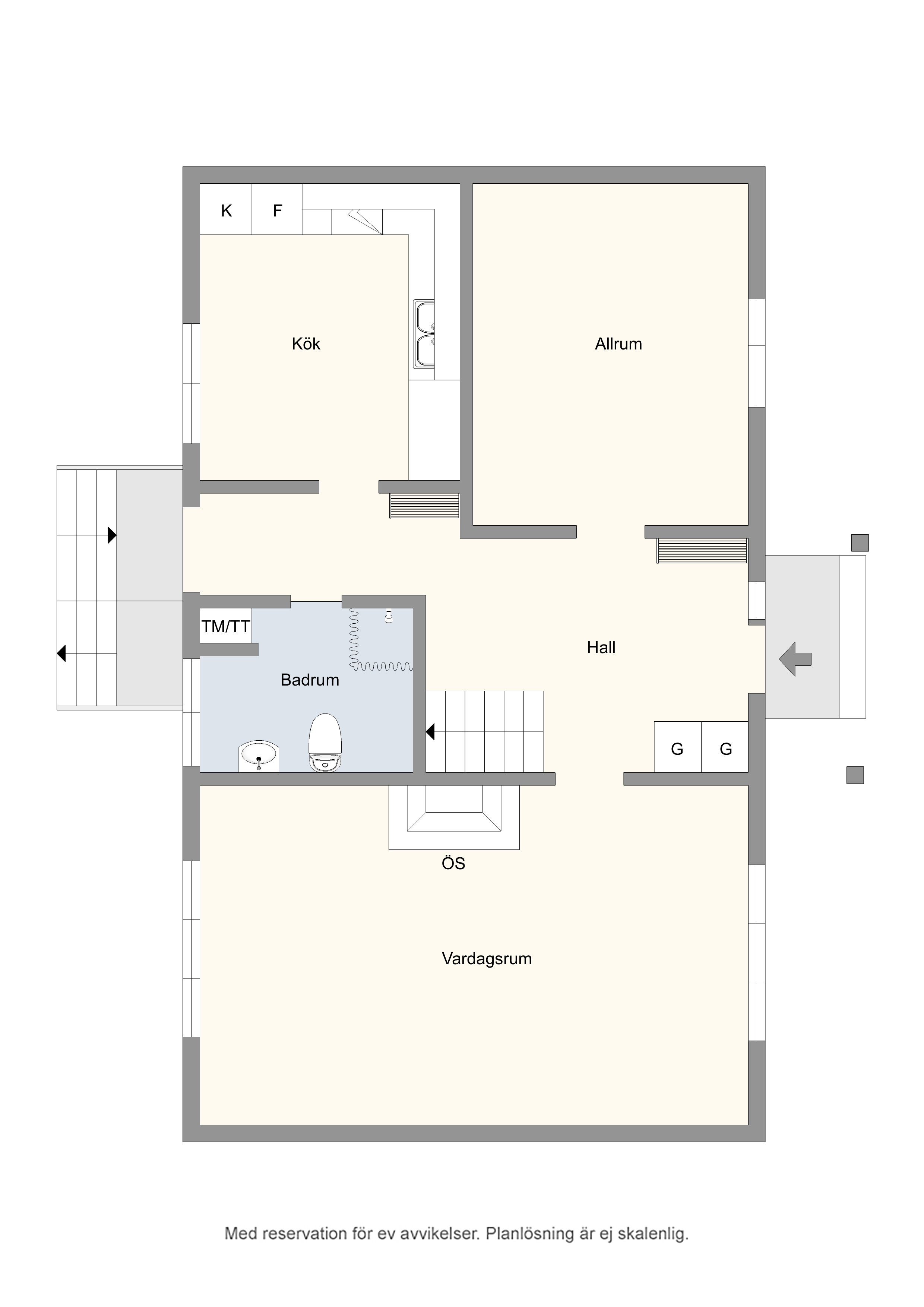 På bottenplan finner man ytterligare ett sovrum, om man inte vill använda det till allrum, eller för att utöka köksstorleken till den dubbla.
