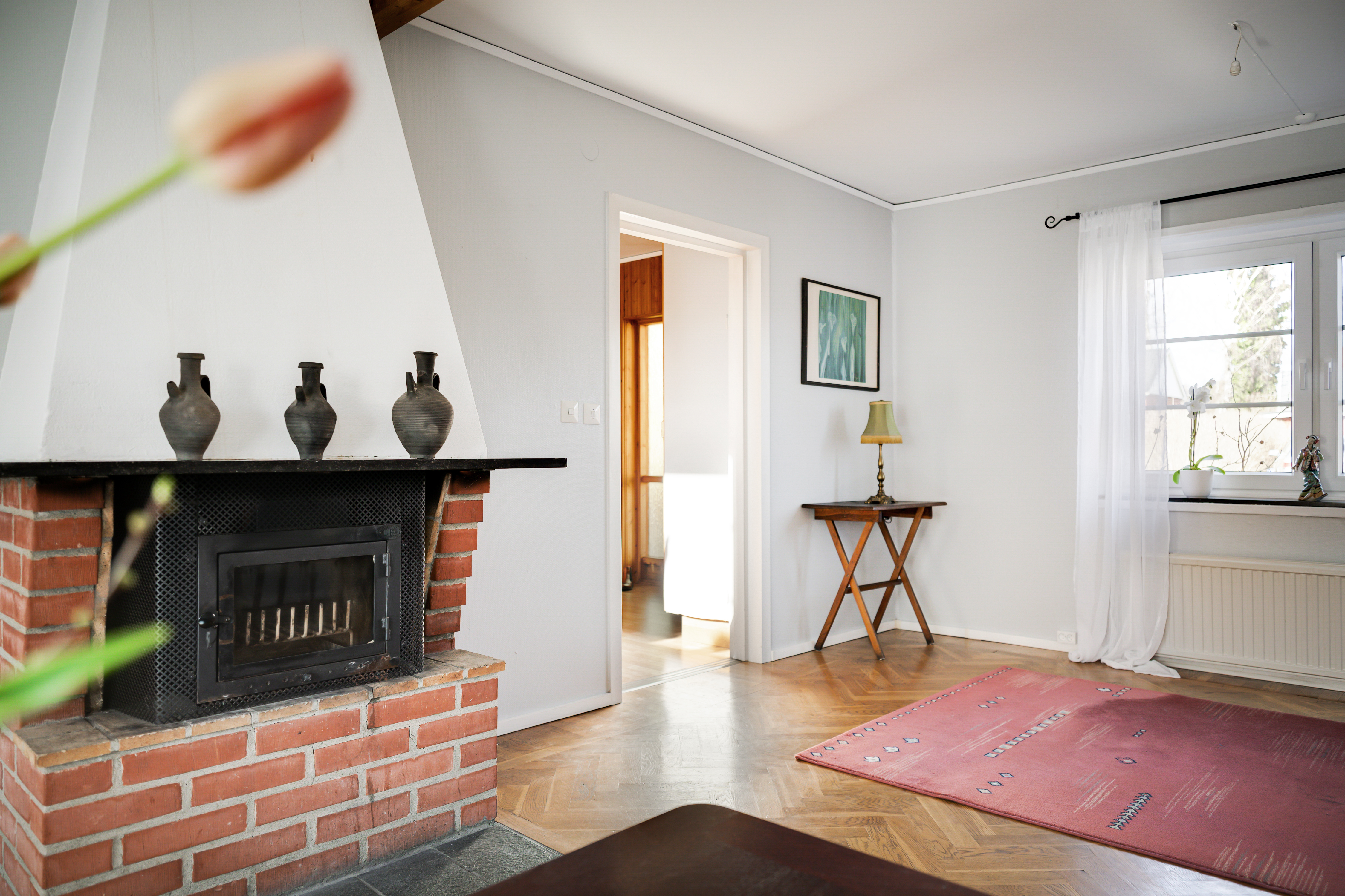 Under huset finns ett mysigt källarrum som ägaren knackat fram tegelväggarna i, perfekt som vin och matkällare.