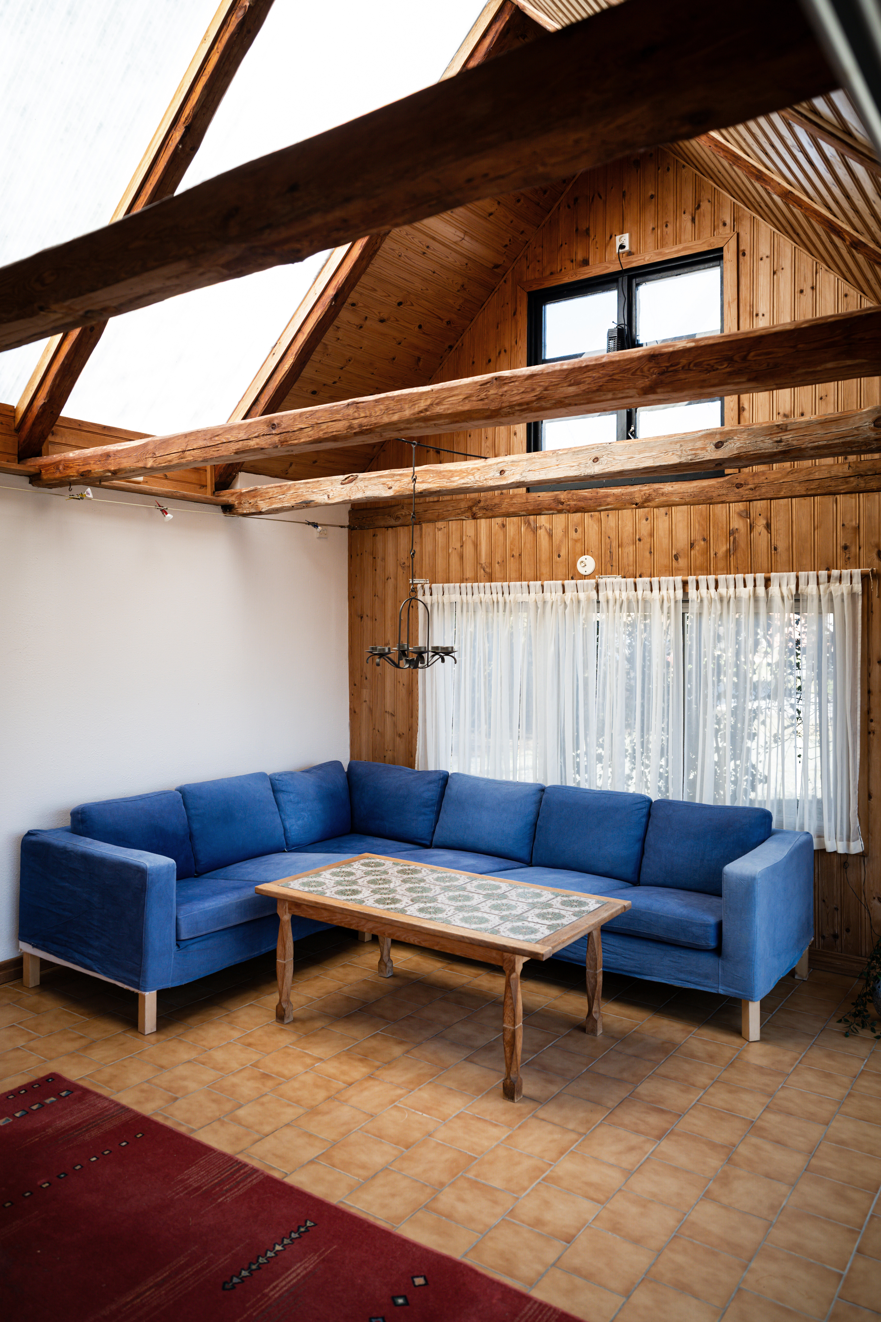 I vinkel till huset finns en äldre länga som en gång i tiden blev ombyggt till isolerat hobbyrum och ett stort uterum som är öppet upp i nock, med infällt ljusinsläpp i taket.