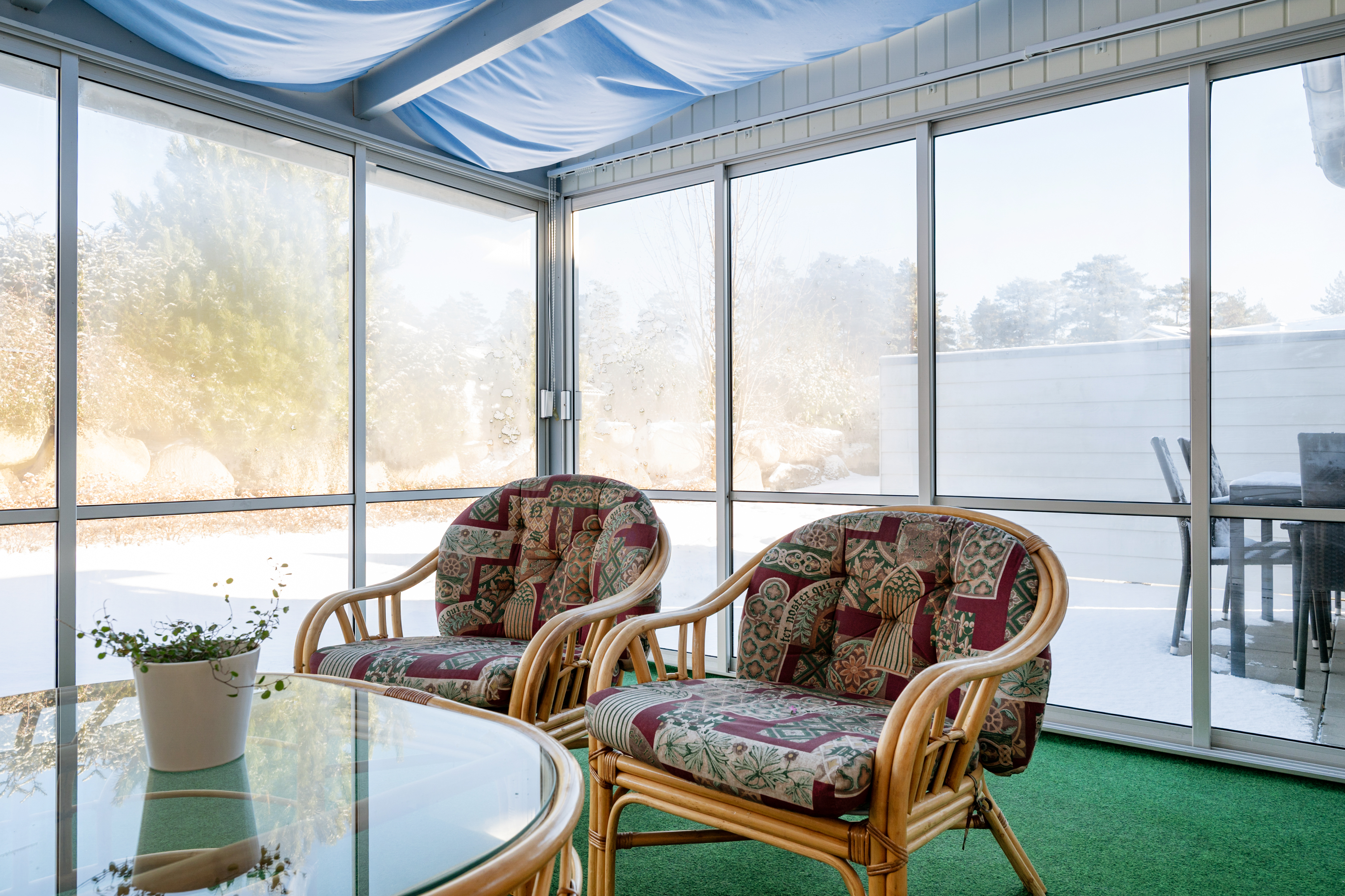 - Utgång från kök/vardagsrum. - Skjutdörrar i glas.