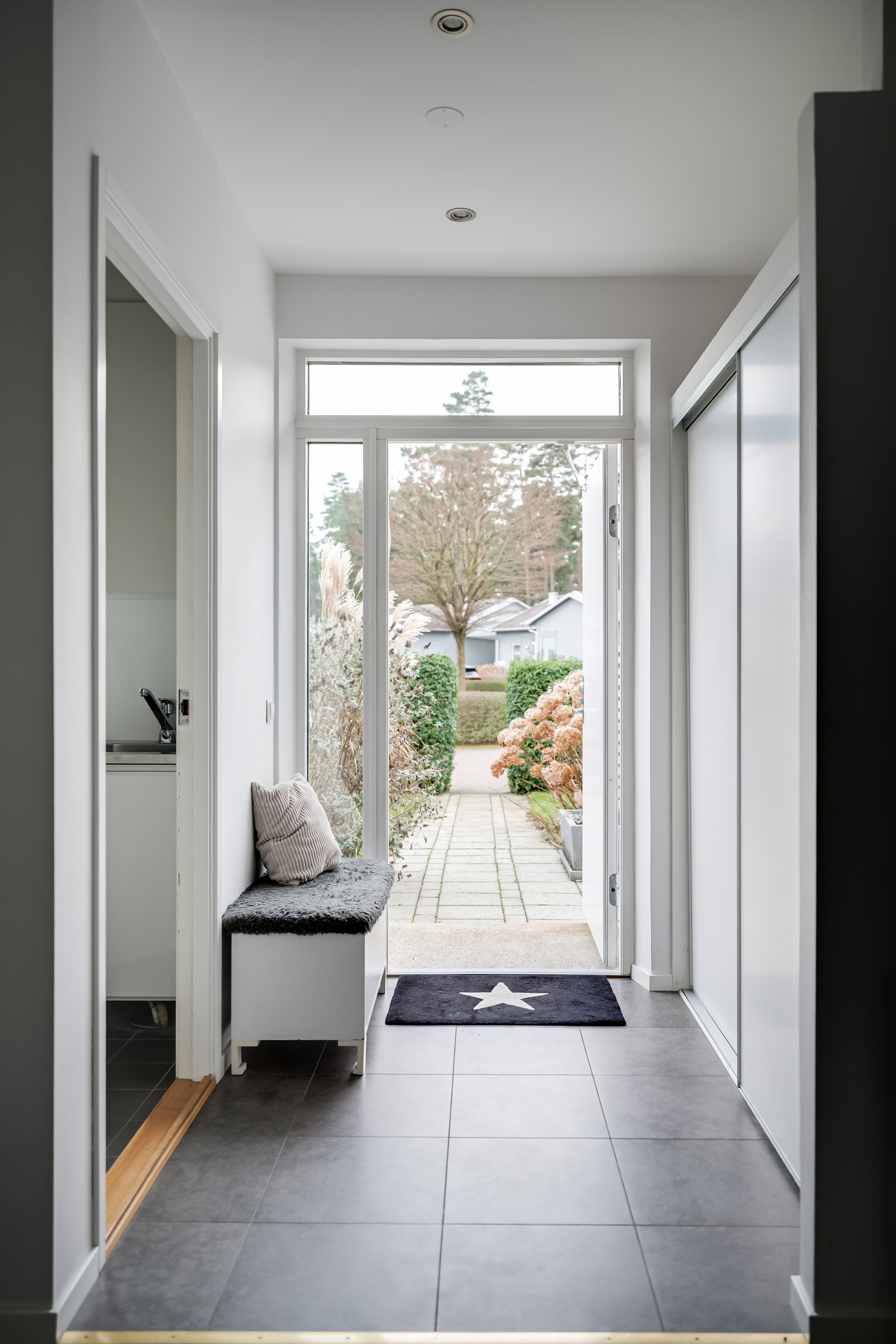 Huvudentré/hall med skjutdörrsgarderob