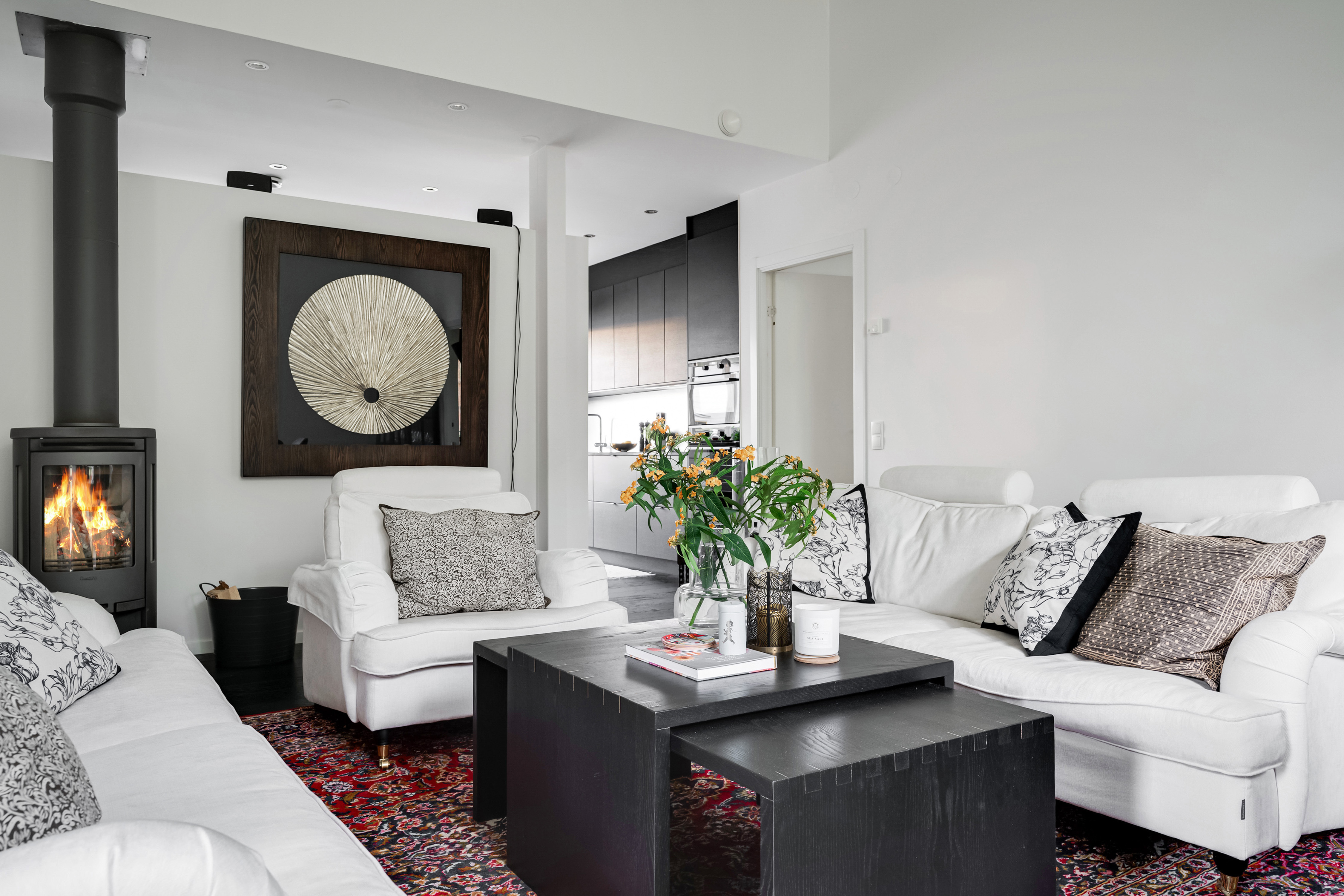 Vardagsrum med braskamin