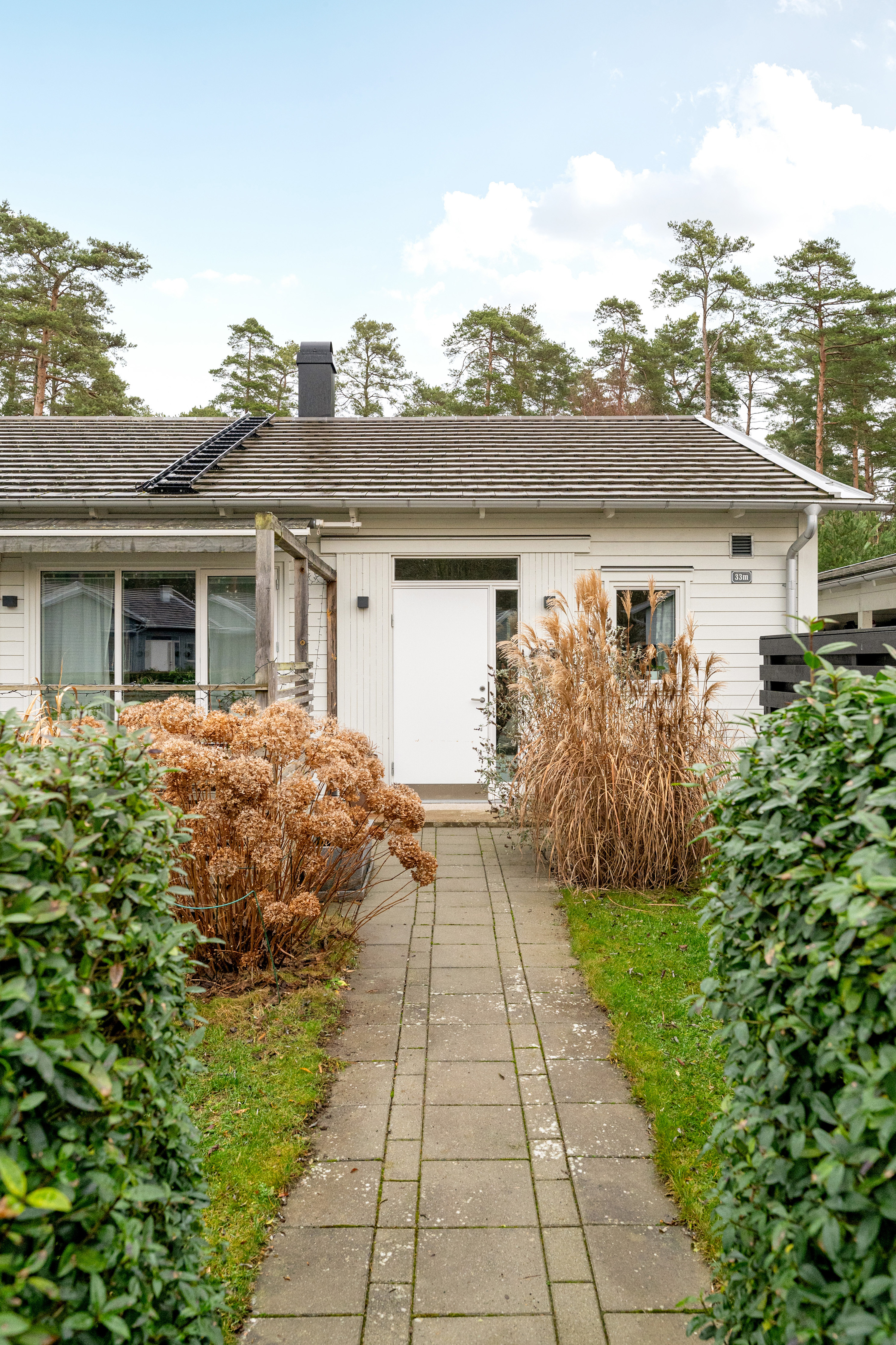 Bilen parkerar man i det kombinerade carport/förråd och framför den finns det två bilplatser.